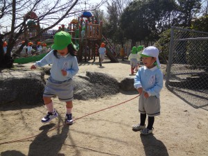 このように自分たちで縄を回して遊ぶ事が出来るようになりましたよ(^O^)/