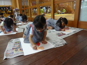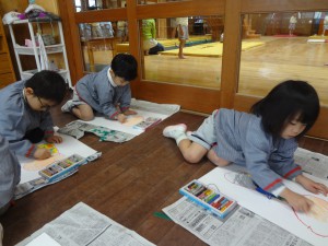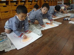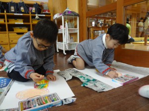 子どもが好きな色を使い、好きな形に描いていく姿が