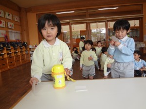 水筒や、ぬいぐるみ、絵本やブロック等内容は様々☆