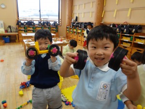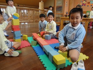 大きなものや長く繋げて遊んでいる姿が