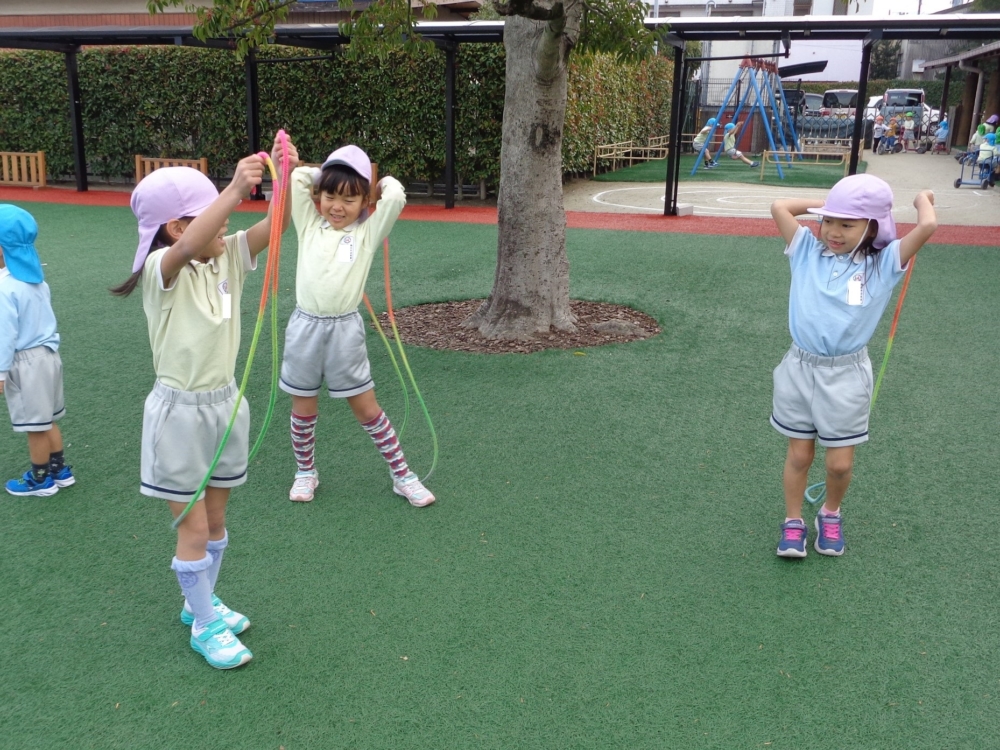 また、自由遊びで女の子は毎日縄跳びに夢中…♡