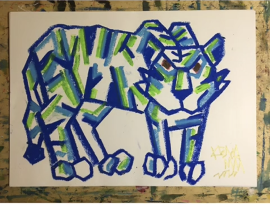 森の木幼稚園 Kei先生のお絵描き講座~カクカクの青い虎」