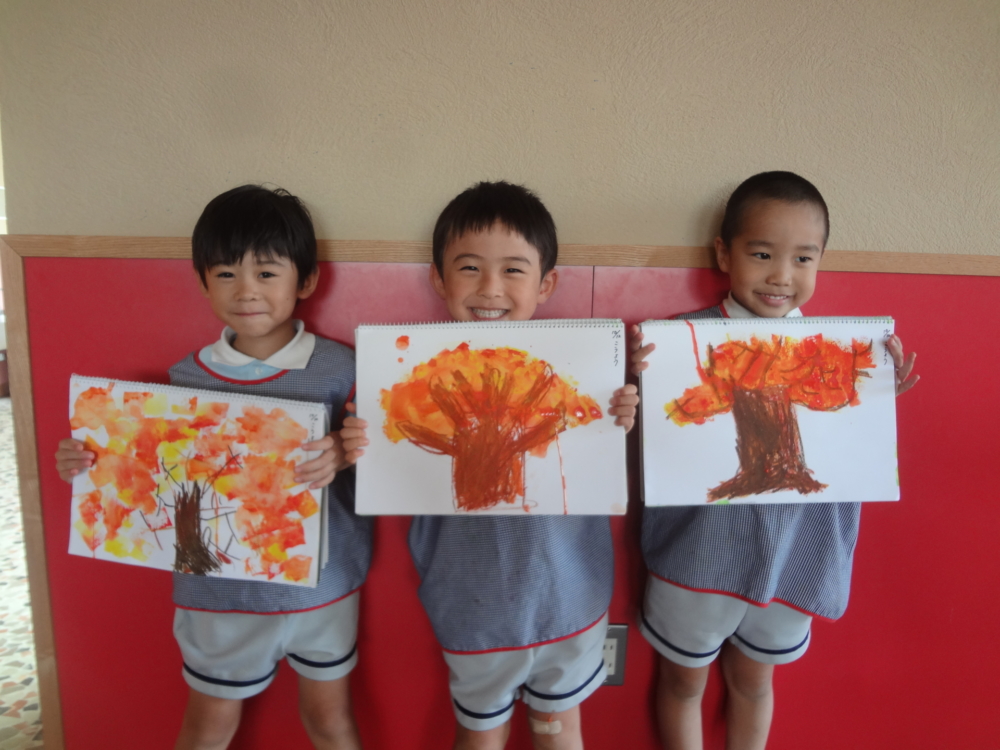 周りには、紅葉やいちょう、秋桜などを描いていました。