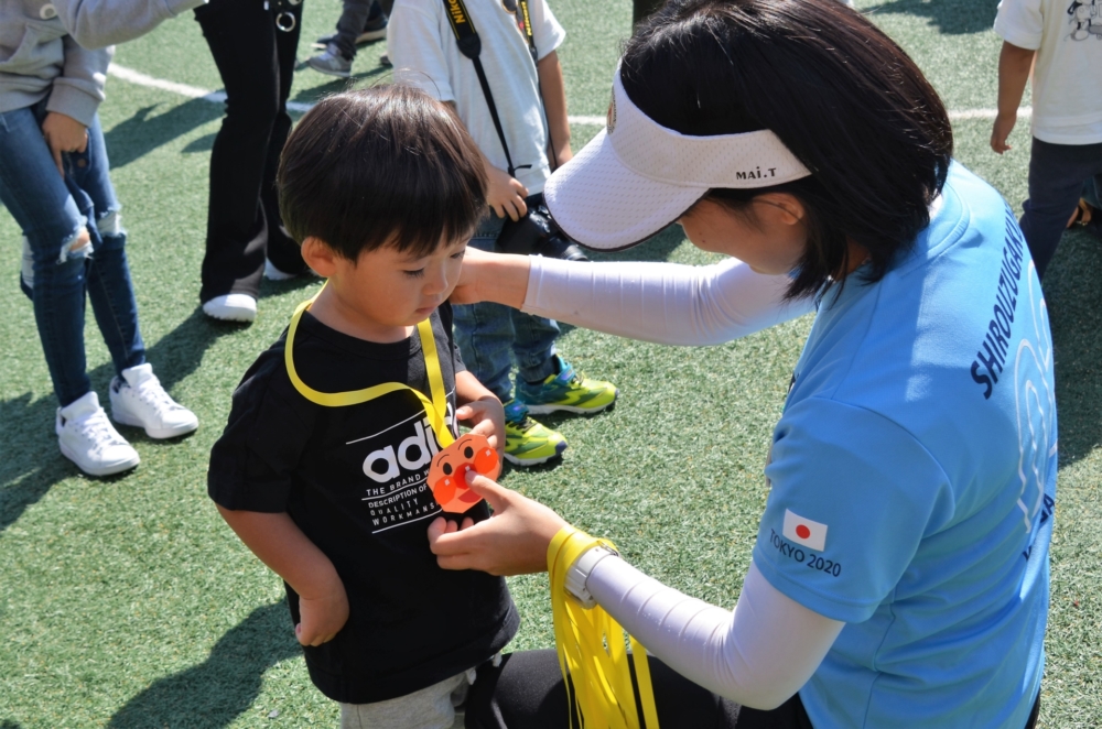 最後は、ご褒美のメダルを一人ひとりにプレゼント
