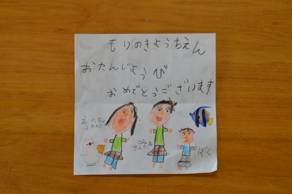 昨日森っ子が「園長先生幼稚園にお手紙書きました」