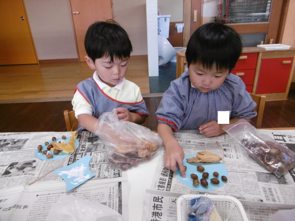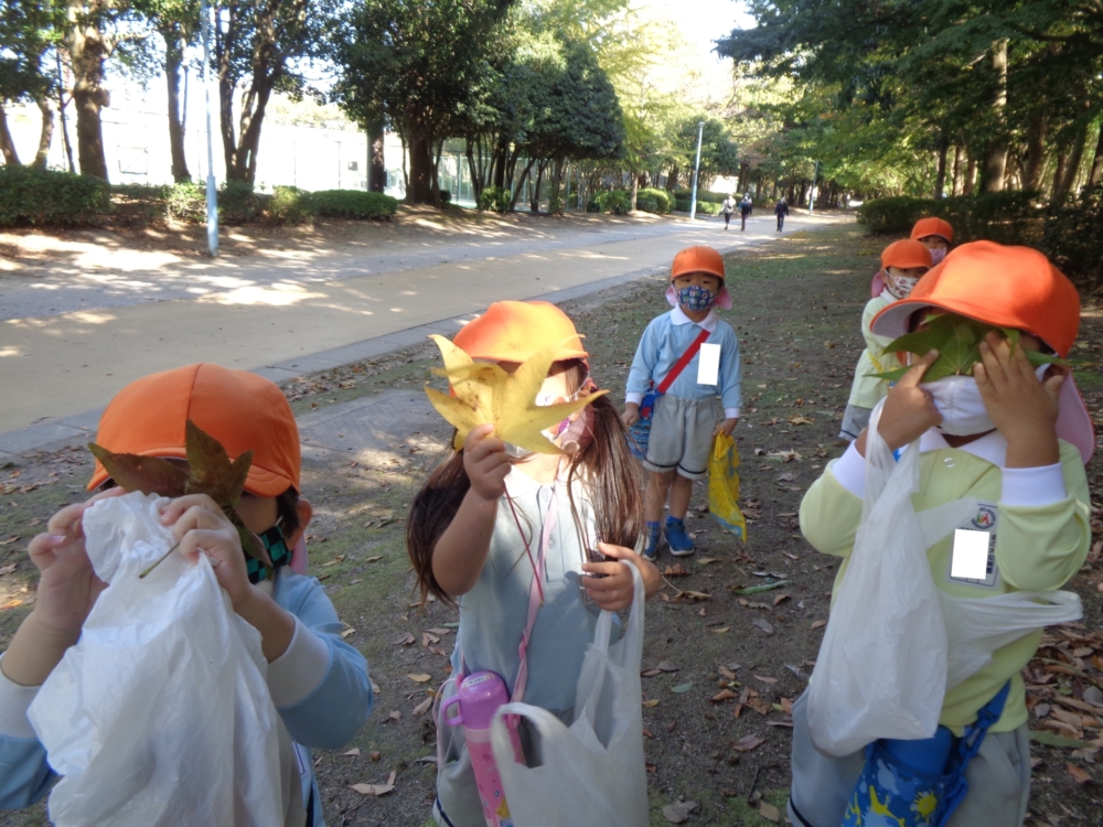 葉っぱを顔に当ててお面にして遊んでいましたよ。