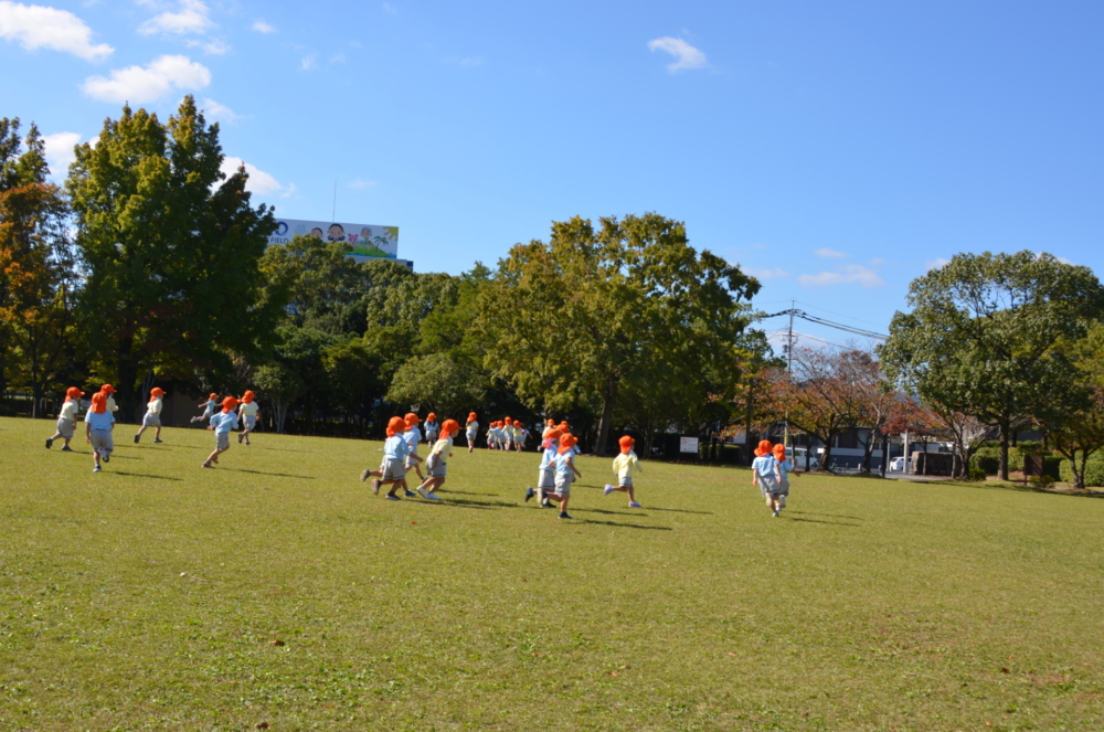 幼稚園の園庭よりも広い広場で追いかけっこをしました。