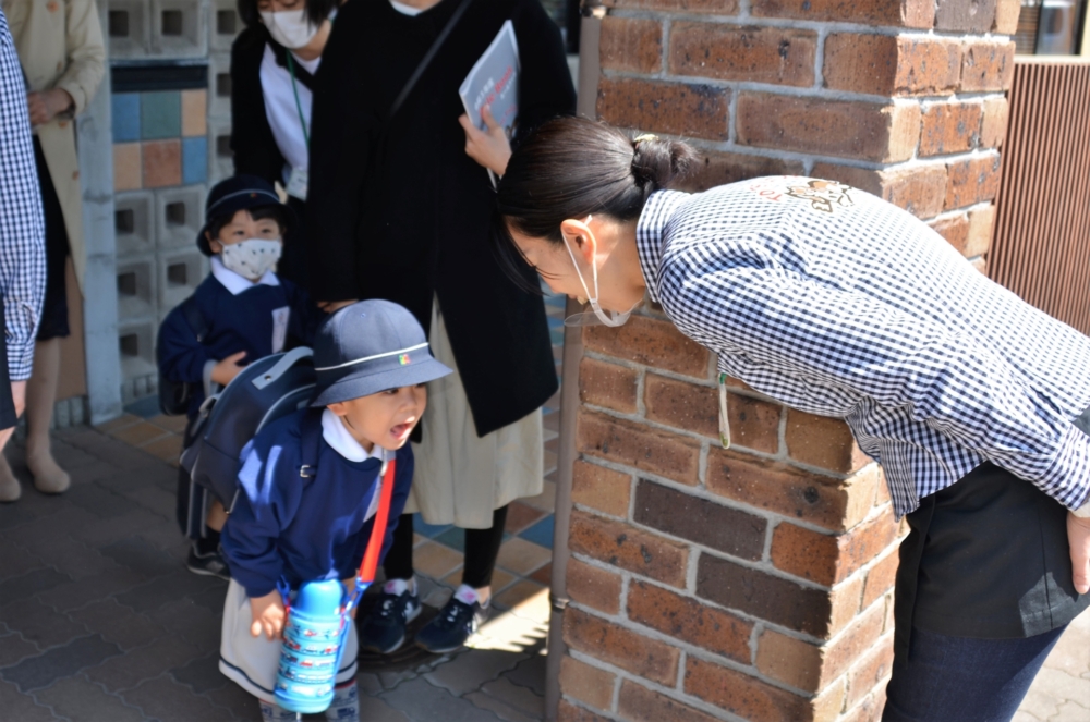 まずは、お母さんと一緒に自分の靴箱の場所を