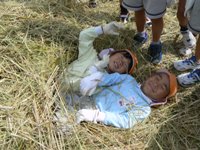 さて、今日は年長が楽しみにしていた稲刈り!!