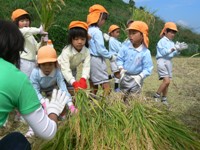 田植えから稲刈りまでの貴重な体験を通して、子ども達は今食べることができている食物に感謝の気持ちを持つことを学びました。沢山の人が手間暇かけて私たちのもとに届くさまざまな食物・・・改めて「残さず食べようね!」の意味が子ども達にも伝わったようです(*^_^*)