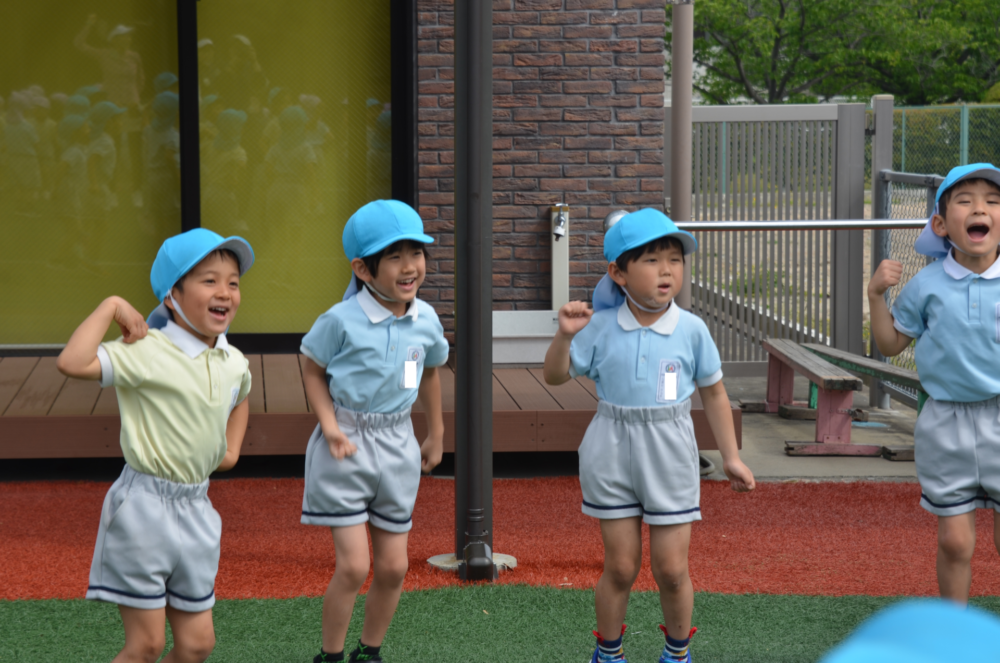 いい天気の中、今年度初めてのまねっこ体操がありました。