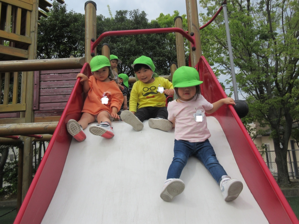 今日は、園庭に可愛い未就園児さんが遊びに来てくれて