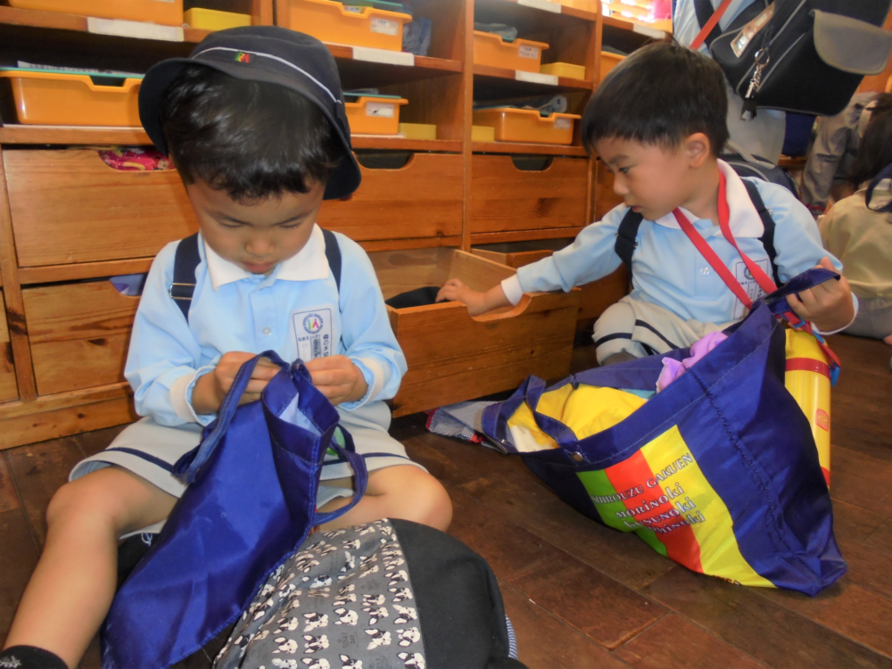 登園すると自分の靴箱、ロッカーを探して自分達で準備。
