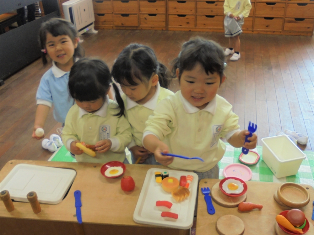 準備が終わると友達や先生と一緒に遊んでいますよ。