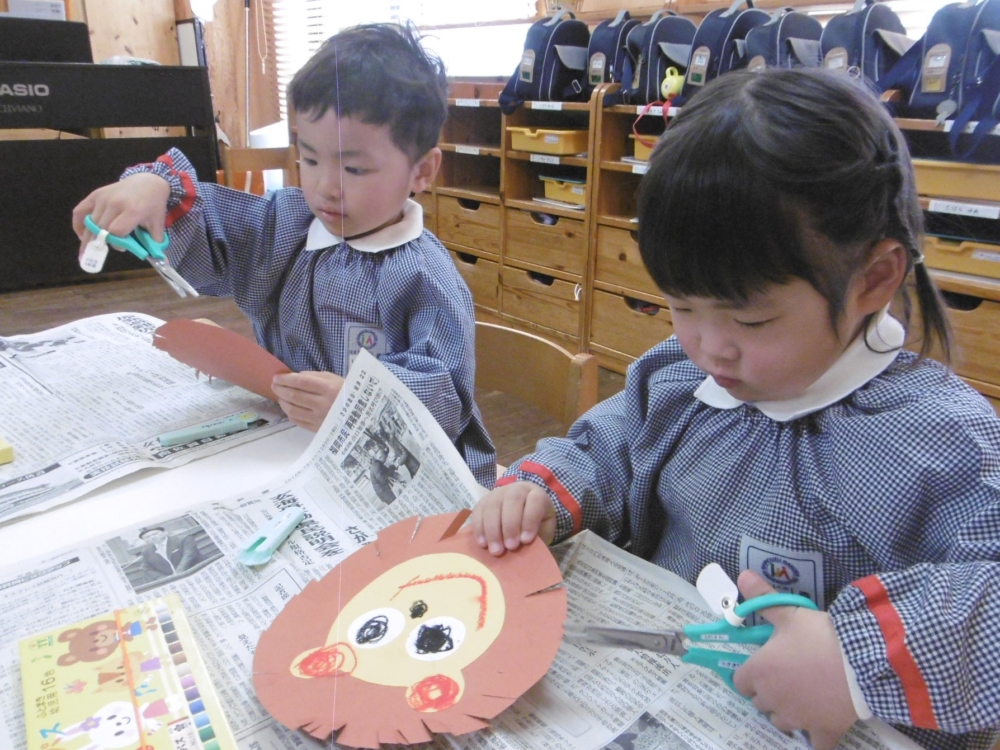 始めてのはさみの活動で、ライオンのたてがみを切って作りました。