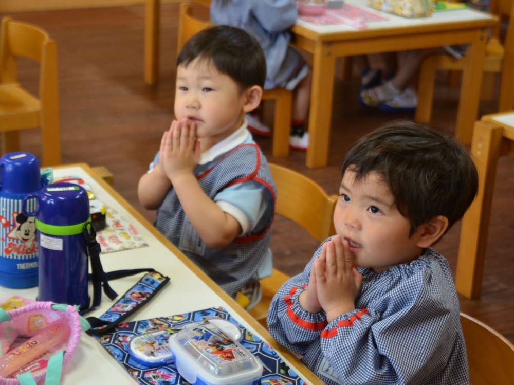 園歌では、二歳から来ている子ども達が大きな声で頑張ってくれています。