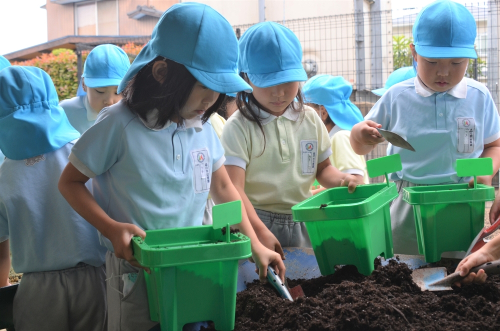 「何色の花が咲くかな?」「早く芽が出ると良いね!」
