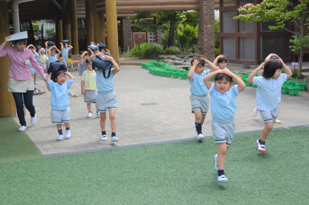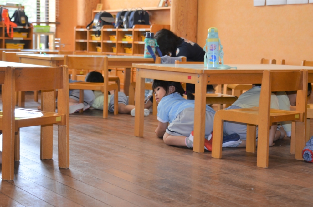 教師の話を聞いて机の下に隠れ、園庭に逃げることができました。
