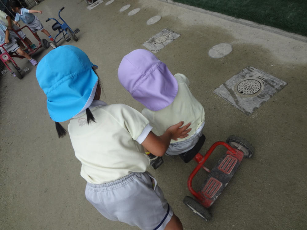 給食後、雨が止んでいたので外で遊ぶことができました!