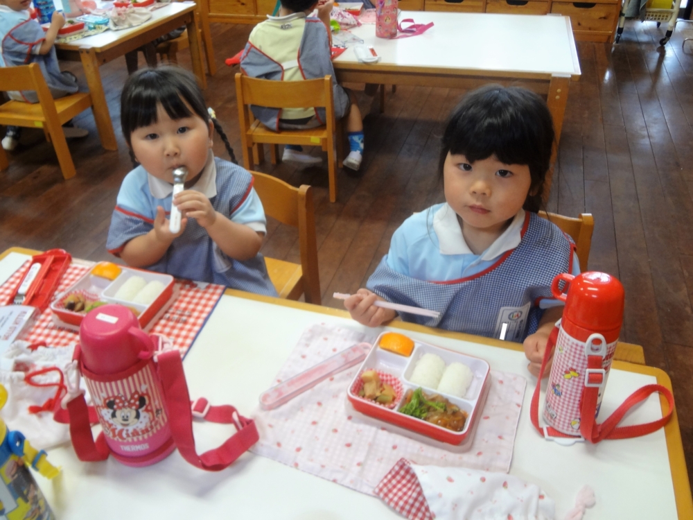 年少・二歳も姉妹園の先生方に、