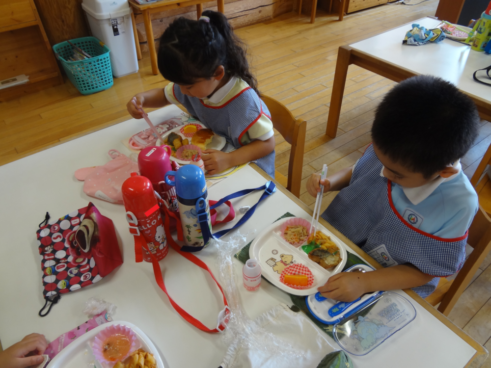 いただきますの後、すぐパンを食べ終わっている子が沢山いました。