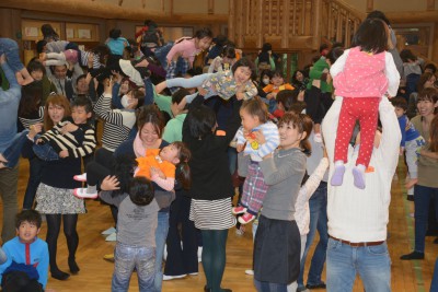 キンダーホールは天井も高いので思う存分出来ますよ)