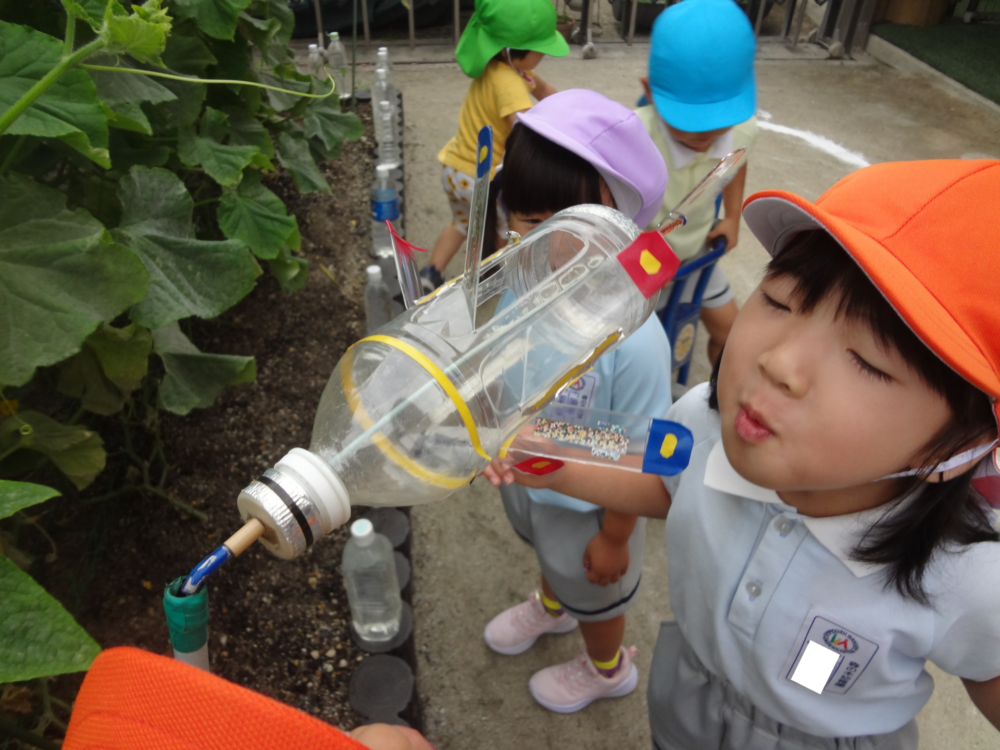 なんと朝顔が少しずつ花を咲かせていますよ!