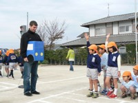 キンダーホールで、皆が集まり、筑紫野警察薯の方が来られると、子ども達は真剣な眼差しで話を聞いていました。