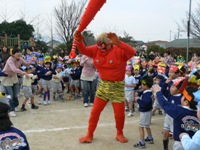 なかなか倒れない鬼に向かって必死に豆を投げる子ども達の姿はとても勇敢でした!!