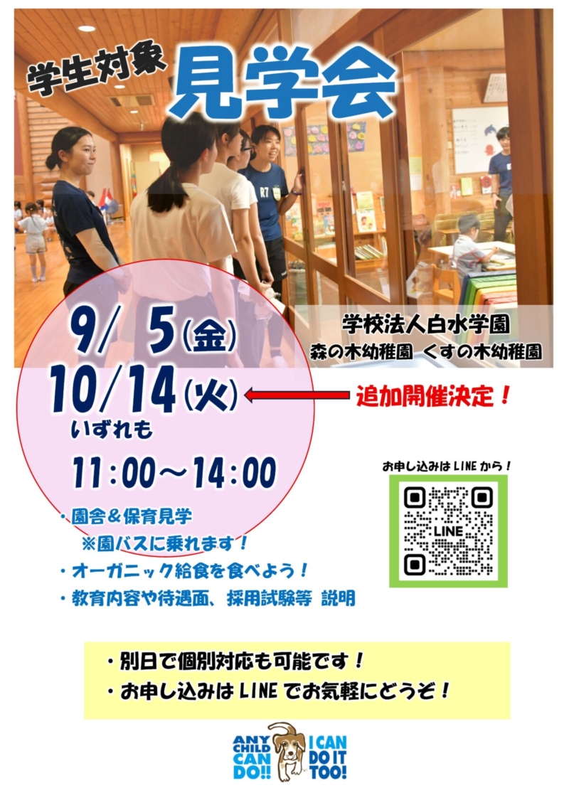 実習・採用について 学生対象見学会のお知らせ(次回開催&追加開催)