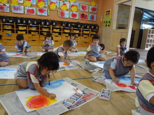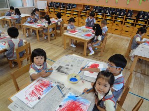 「カニさん暑い暑いって言ってるから、いっぱい塗ってあげないとね!」