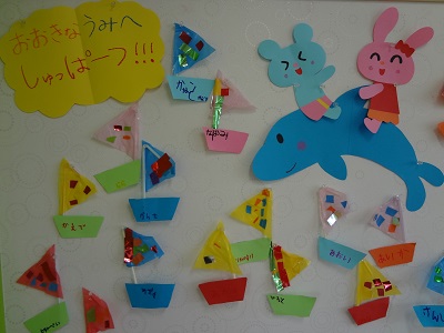 白水学園の壁面は、子どもの作品と教師の作った物と合作して作ります!