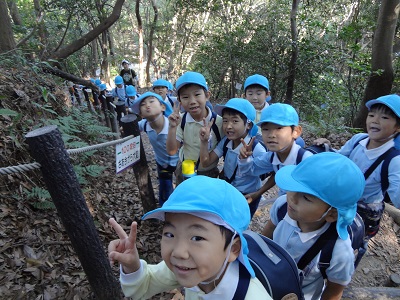 先日、年長組で天拝山に登りました。