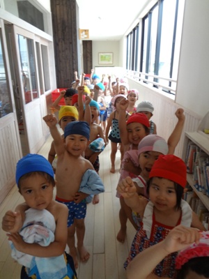もちろん、自分で畳みますよ!20130618kigae.jpg「できた!!プールへ出発(^O^)/」