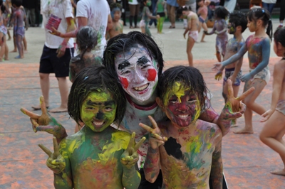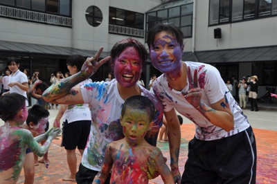 泥遊びや巨大しゃぼん玉、石鹸絵の具、水風船
