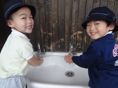 S君「うがいしたら口の中のばい菌流れていくとよ!」