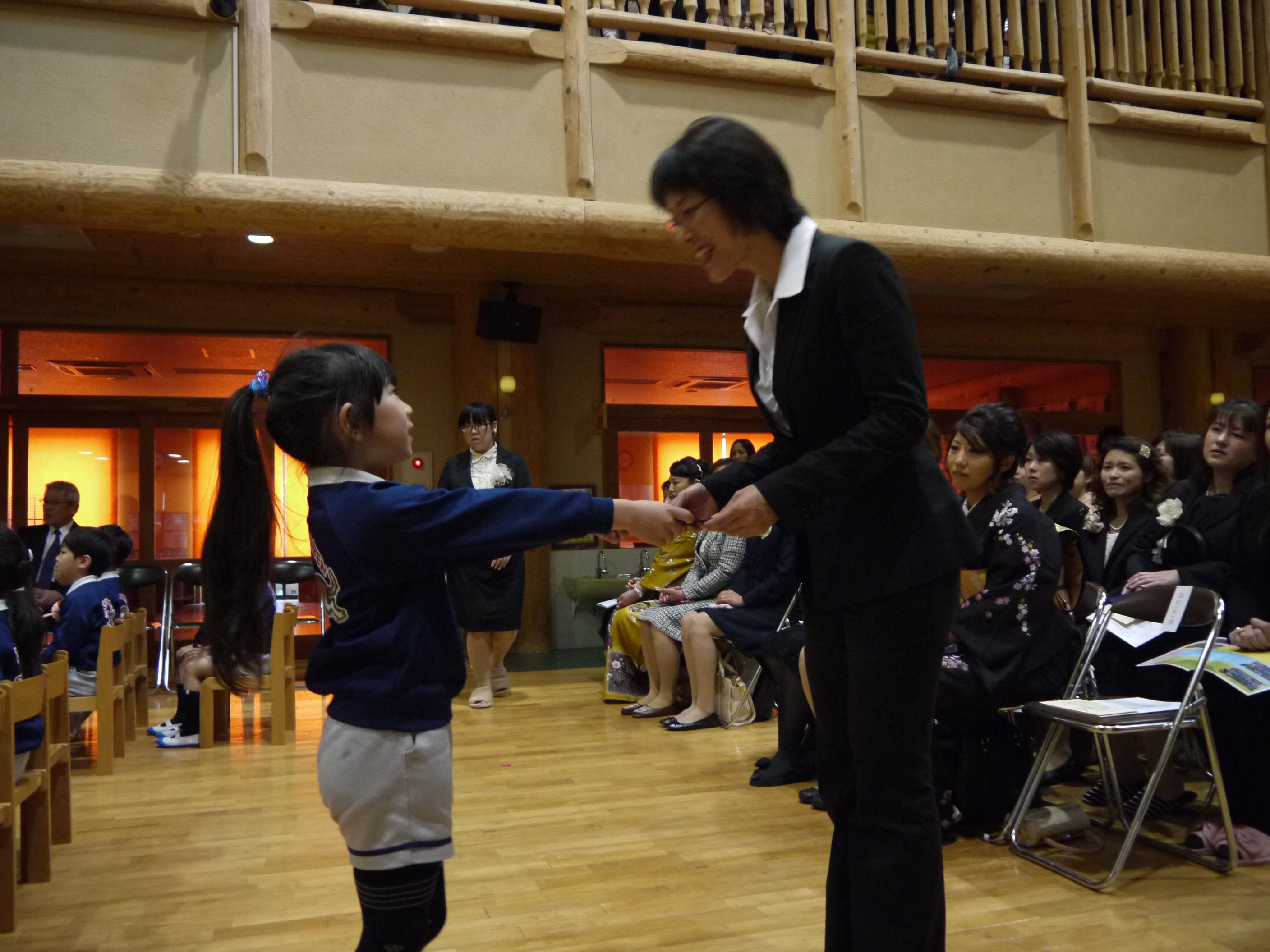 大きな声で返事をし、一人ひとりが園長先生から卒業証書を頂き