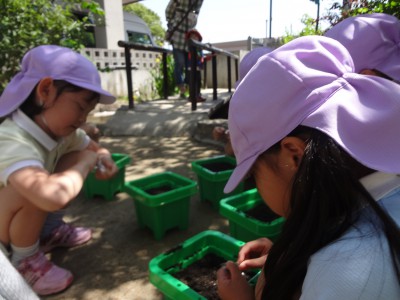 Hちゃん「種、落とさんように植えるよ!」