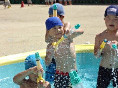 R君「水鉄砲の水が花火みたいで綺麗やったよ!」