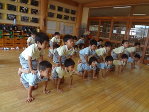 年中はリズム体操で組体操をします!