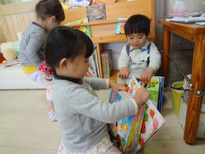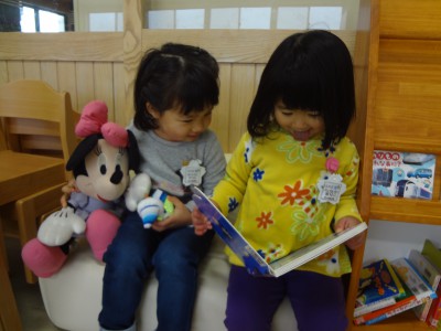 自由遊びの時間、友達と並んで絵本を読んでいたYちゃん