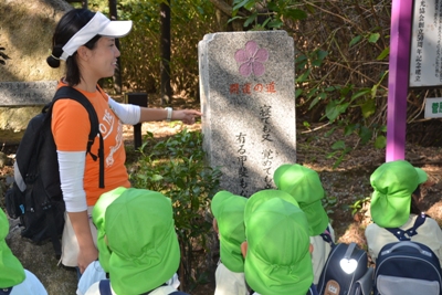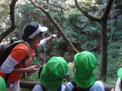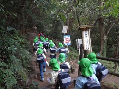 落ち葉で遊んだりしながら楽しく登ることができました。