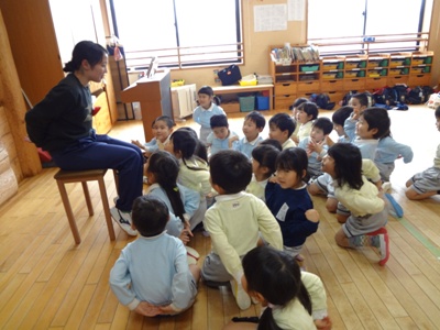 一緒に遊んだり、手遊びや絵本の読み聞かせをしたりと