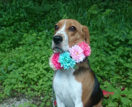 ペットは何かの犬のイベントで似合わない格好をさせられていました