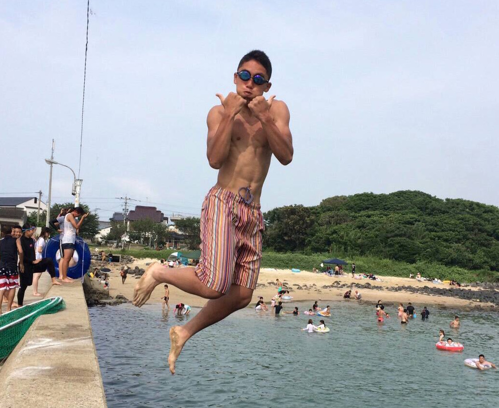 オヤジの海パンを勝手に履き、久しぶりの休みに部員仲間と海でたらふく遊んだようで・・・
