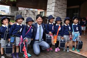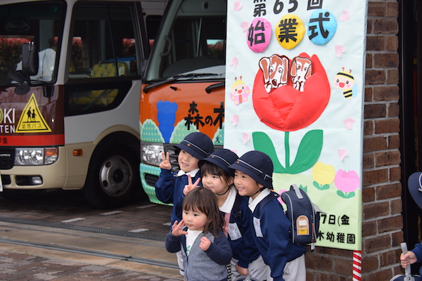 森の木で「たけしせんせ〜い」から「園長先生になったよ!」