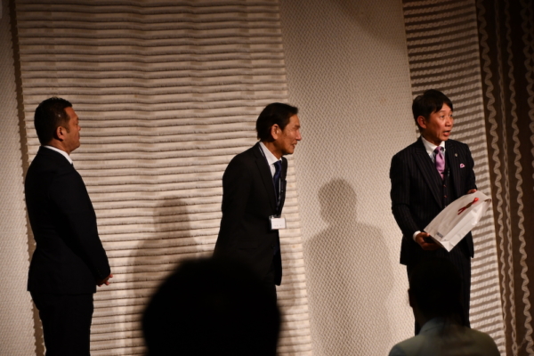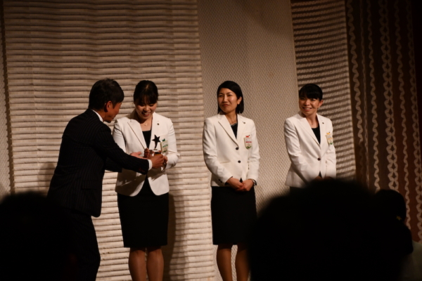先生達の昨年の頑張りを讃える皆勤賞や特別賞やMVPの発表(写真はMVPの3人)