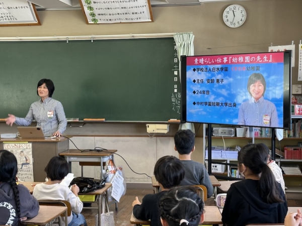 記念行事の一環として4年生のあるクラスに向けて講演してきた