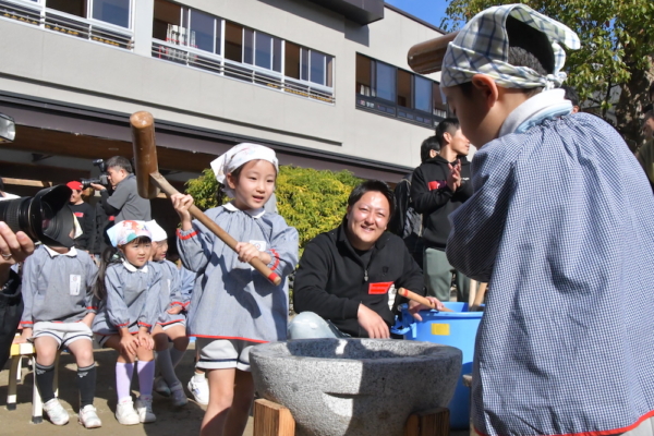 以前は私とバスの先生で餅をついてへとへとになっていた