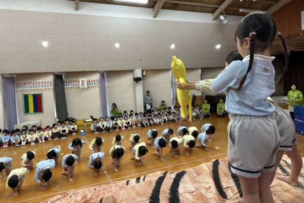 今日は他の学年が年長体操発表や年中ミュージカルを見学に来ていましたが